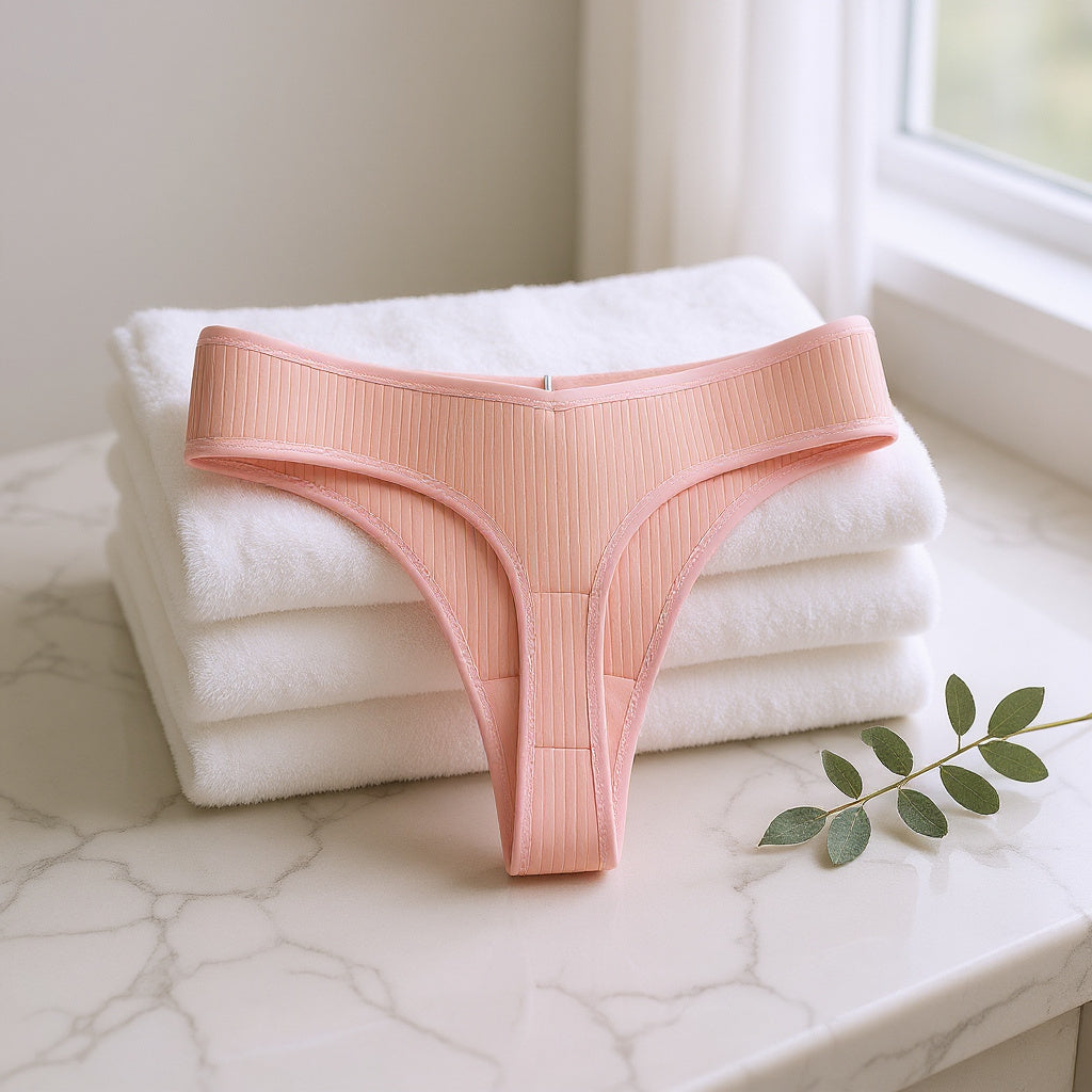 Elevate your everyday essentials with our beautifully crafted 3-pack, 6-pack, or 9-pack thongs in blush peach, creamy beige, and mint green.